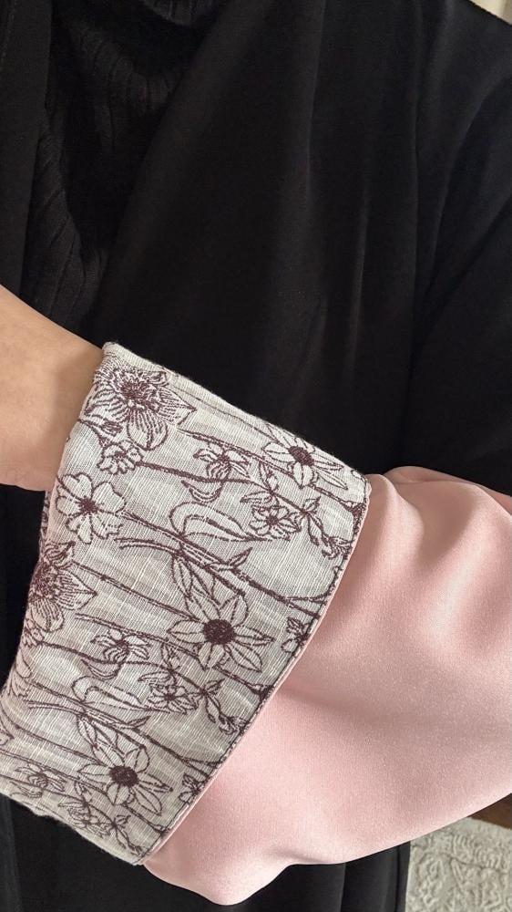 - عباية بكم لينن مشجر تجمع بين الأناقة والراحة بفضل الخامة العالية.