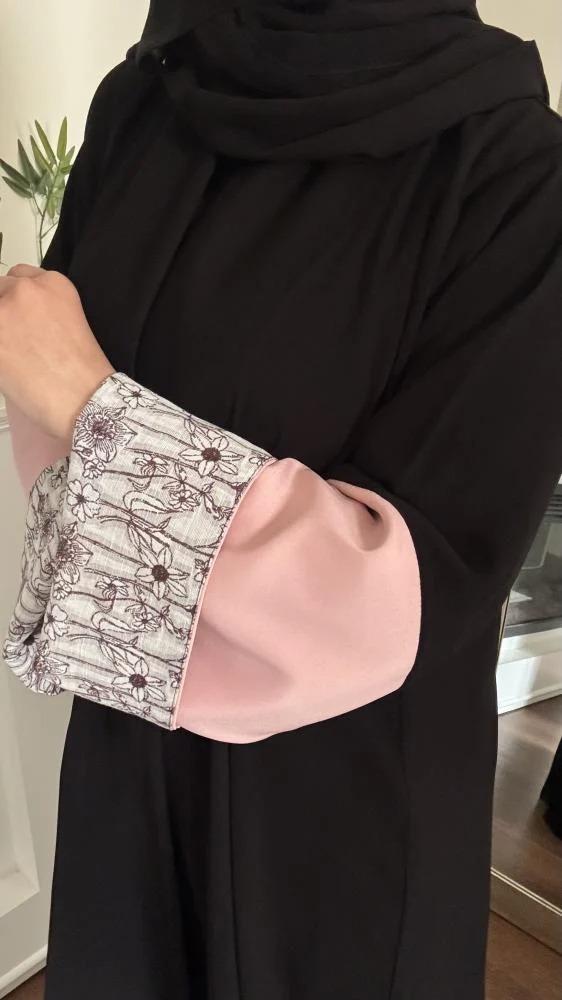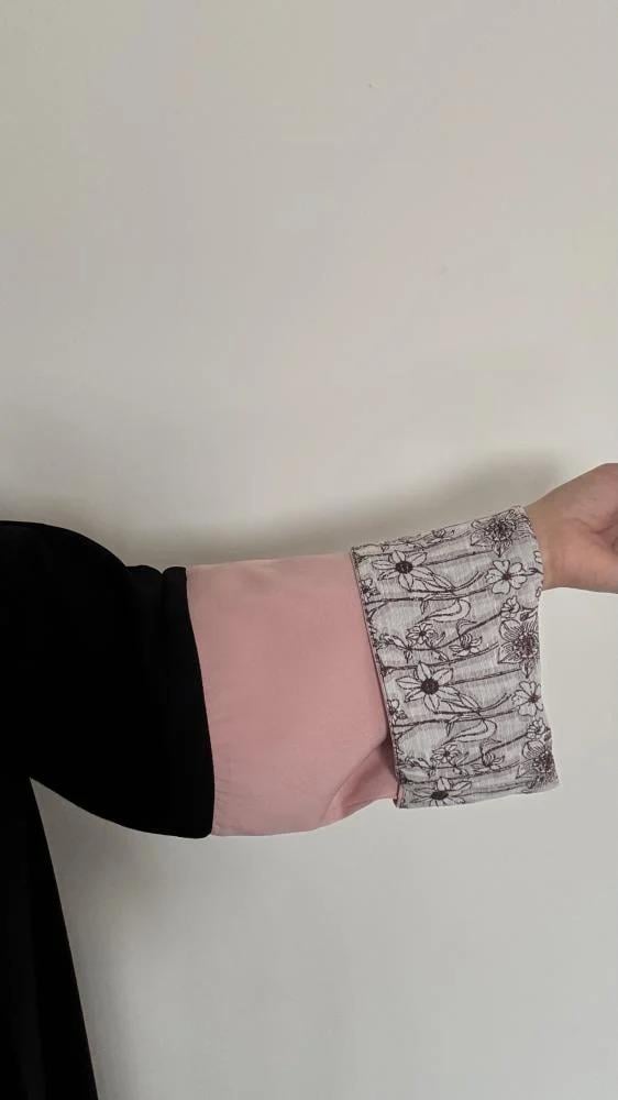 - اللون: أسود مع تدخيلة وردي فاتح / عنابي في الأكمام